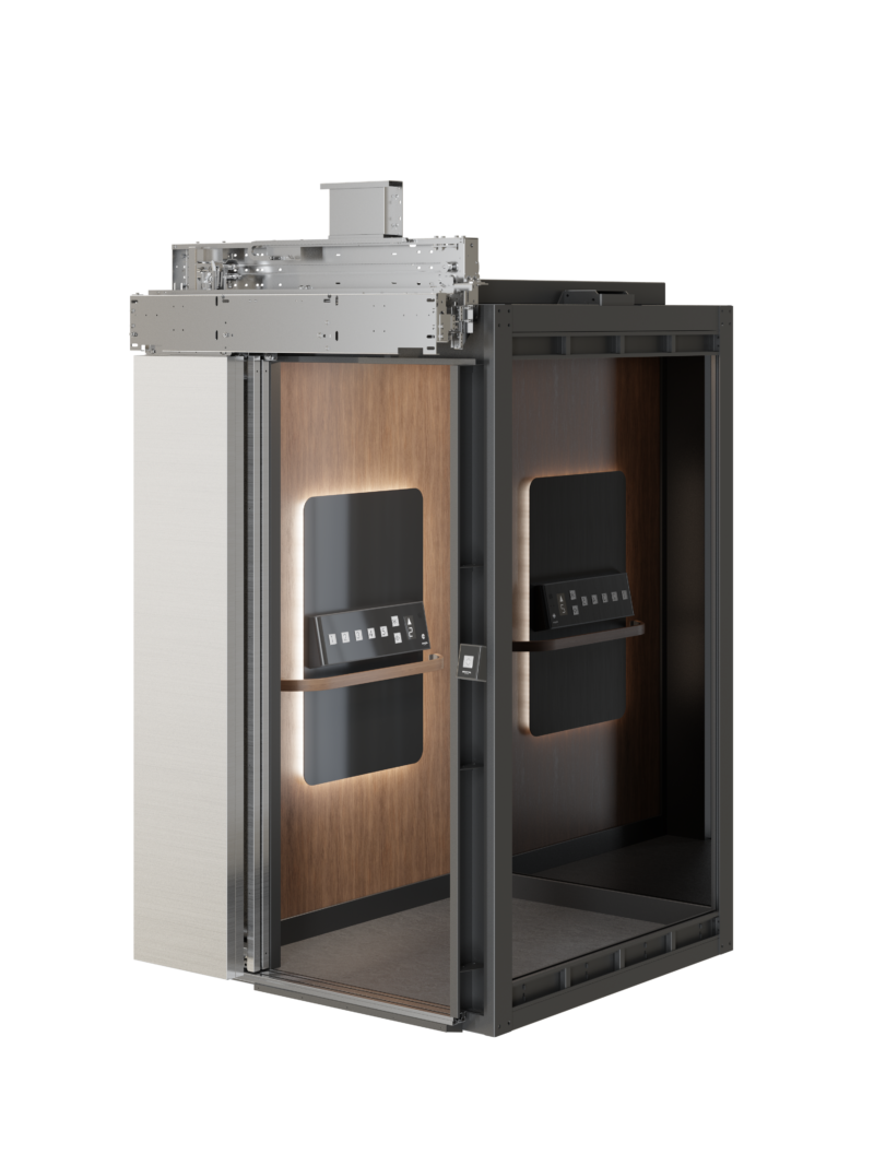 Gravital高瑞达家用电梯采用了特殊的U型钢带设计结构,两侧受力均匀,同时使井道的空间利用率提升。