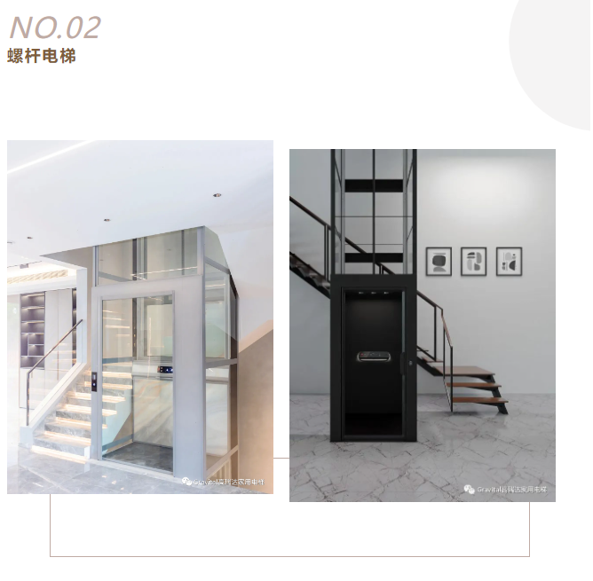 适用场所:螺杆电梯适用于不同的家居场景,如楼梯中间、靠墙位置等。